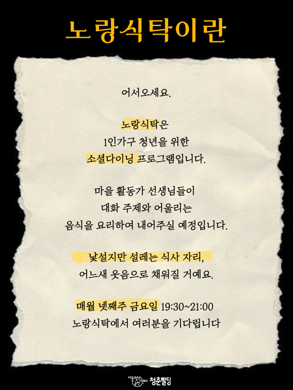 [노랑식탁] 1인가구 소셜다이닝 노랑식탁 3월 참여자 모집