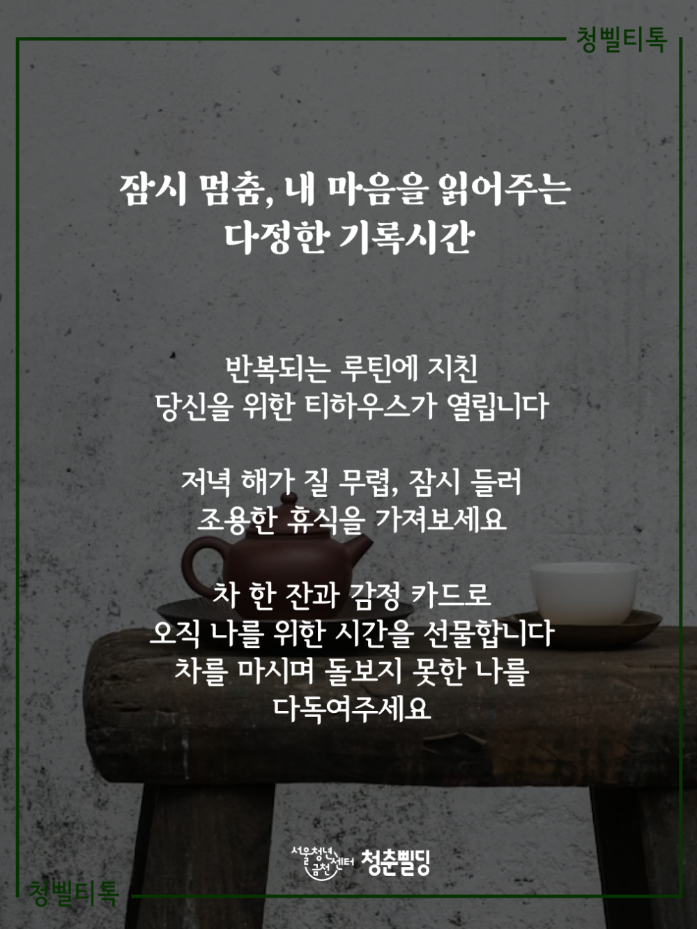 [청삘티톡] 감정 찻집, 록산 티하우스 참여자 모집 (상시)