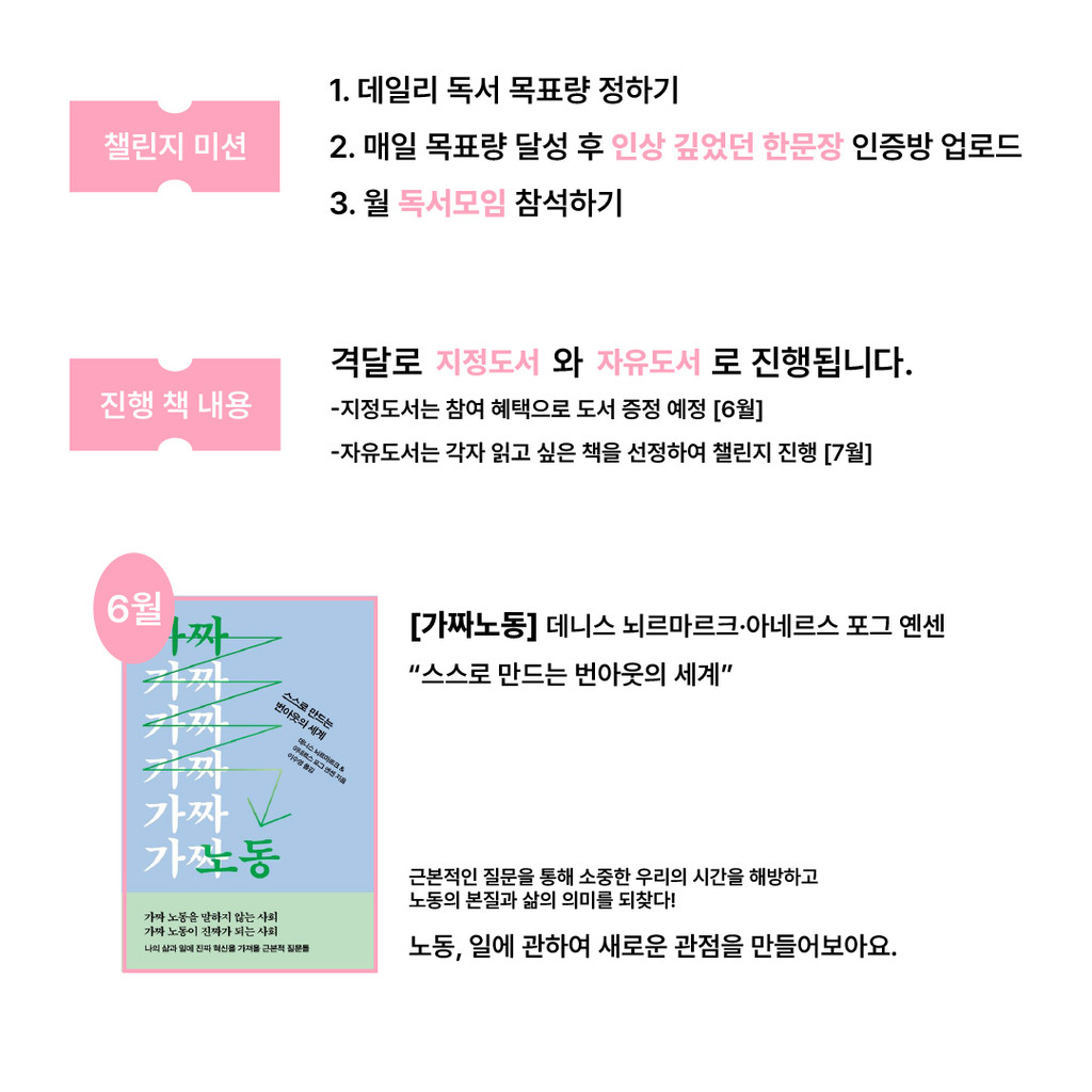 2024년 독서챌린지동아리 "체크인(책in)" 6-7월 참여자를 모집합니다.