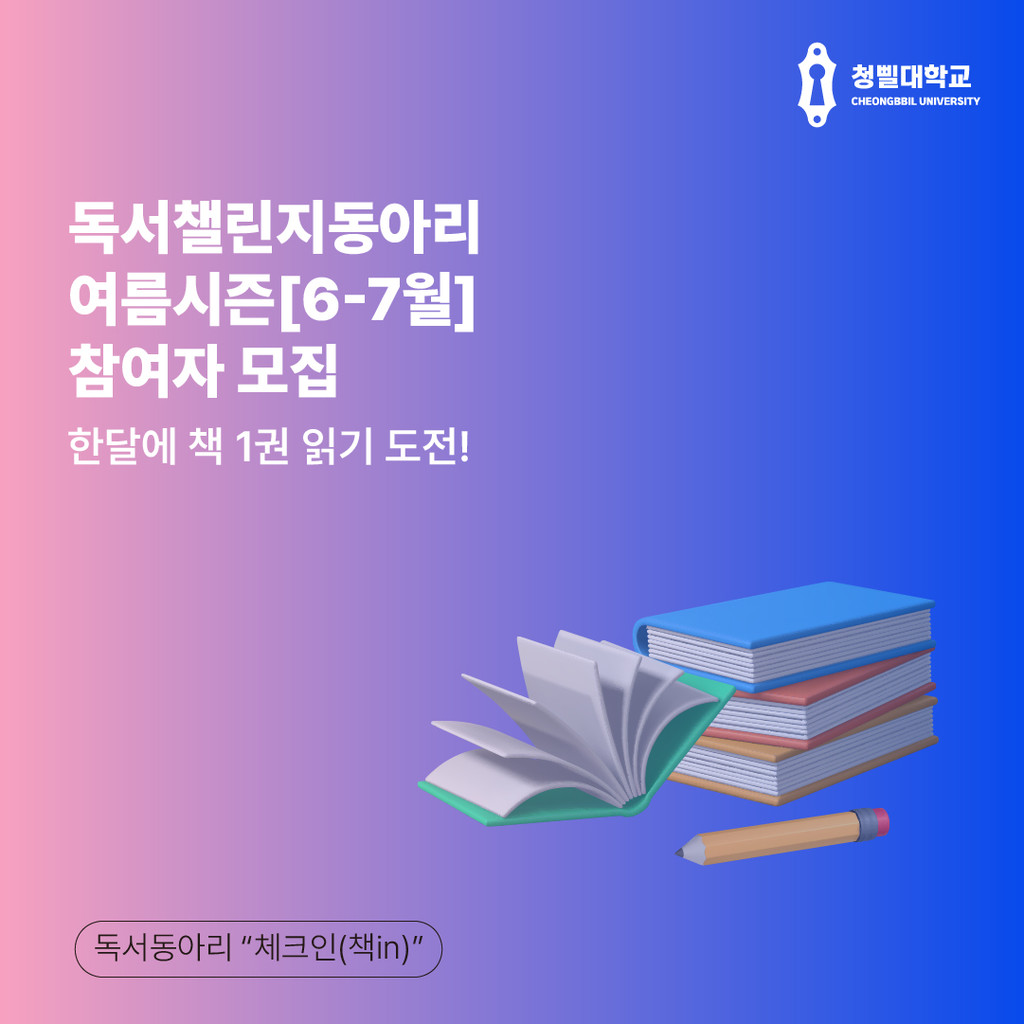 [동아리모집] 독서챌린지동아리 "체크인(책in)" 6-7월 참여자 모집