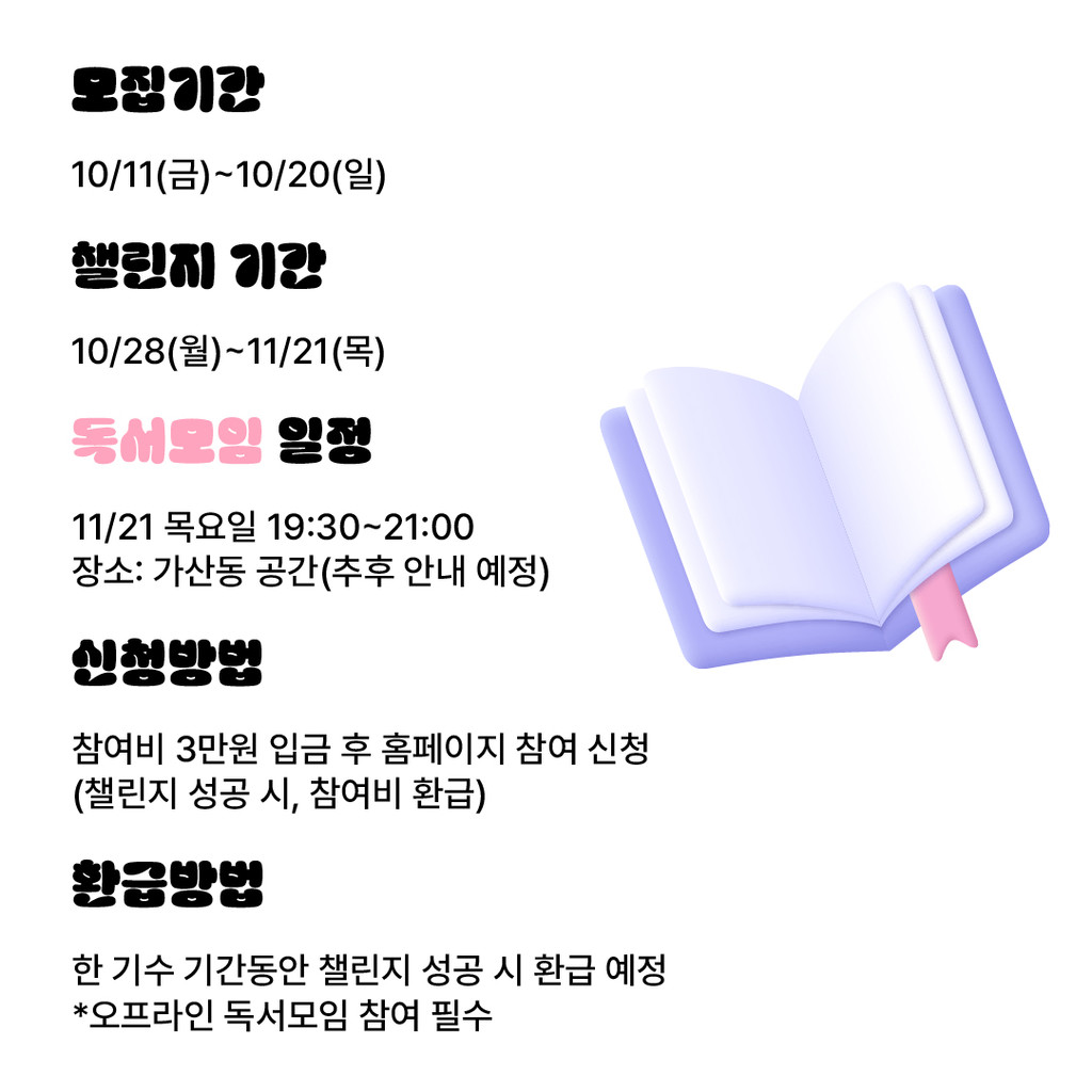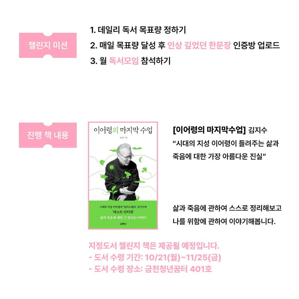-챌린지 도서 수령기간: 10/21(월) ~ 11/25(금)