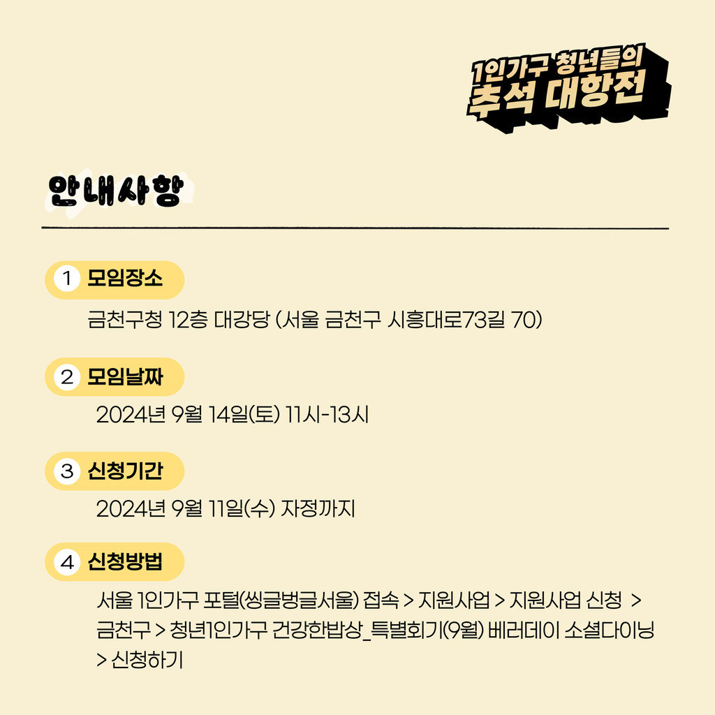 🔹모집대상 : 서울시 거주 또는 서울시 생활권 청년 1인가구(만19~39세)