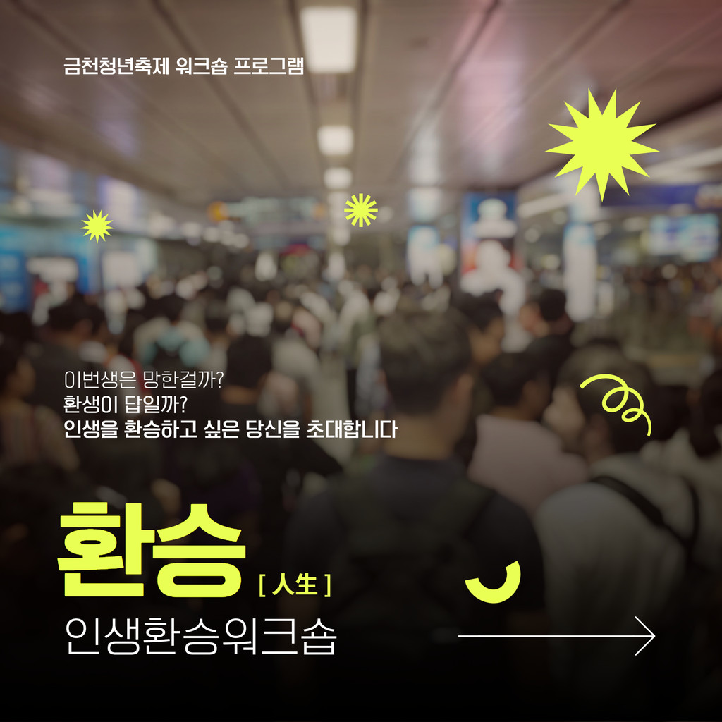 '나'를 주제로 하는 다양한 워크숍을 들으며 인생의 환승역에 함께 이르러봅시다!