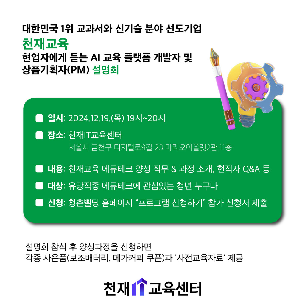 [천재교육X청춘삘딩] 천재교육이 알려주는 유망직종 에듀테크 설명회
