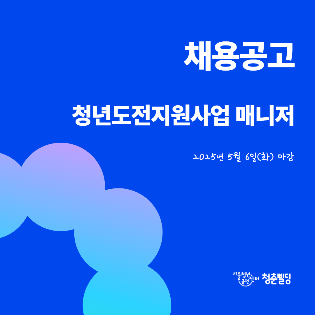 ㆍ채용 분야 : 서울청년센터 금천 청춘삘딩 청년도전지원사업 매니저