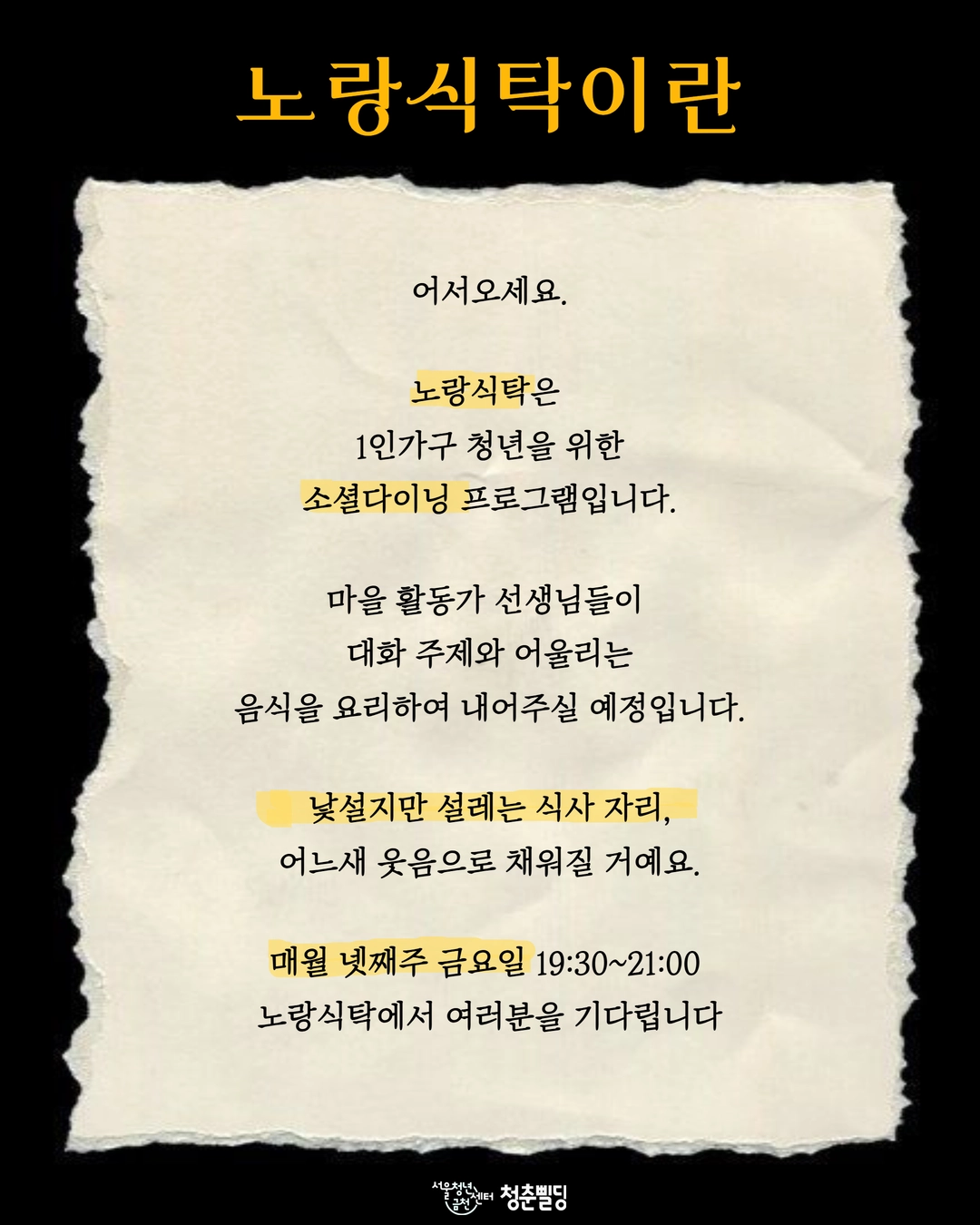 [노랑식탁] 1인가구 소셜다이닝 노랑식탁 3월 참여자 모집