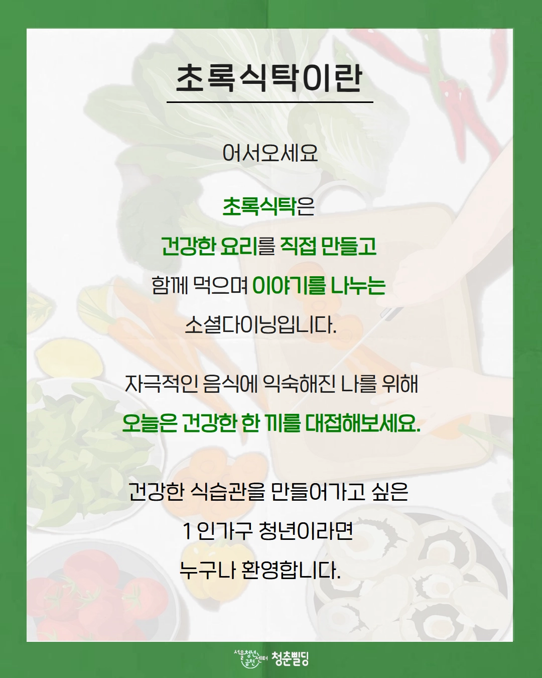 [초록식탁] 1인가구 소셜다이닝 초록식탁 3월 참여자 모집