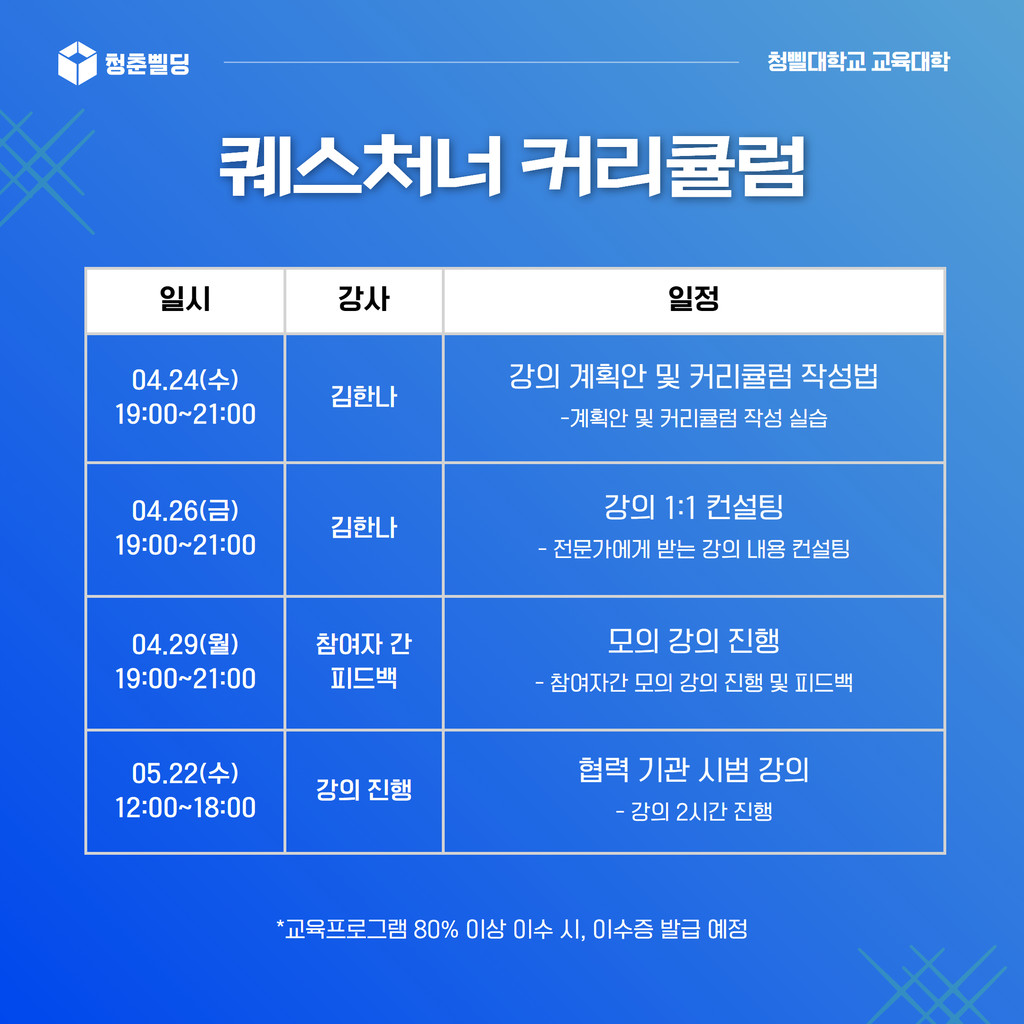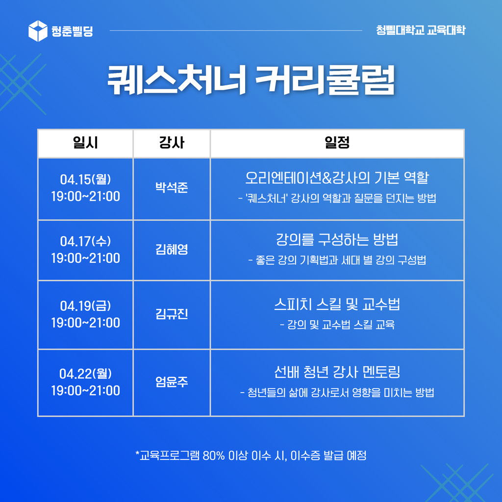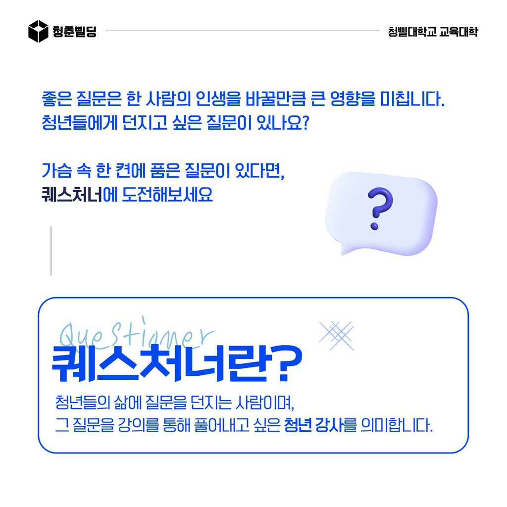 2024년 청삘대학교 교육대학 "퀘스처너" 강사 모집
