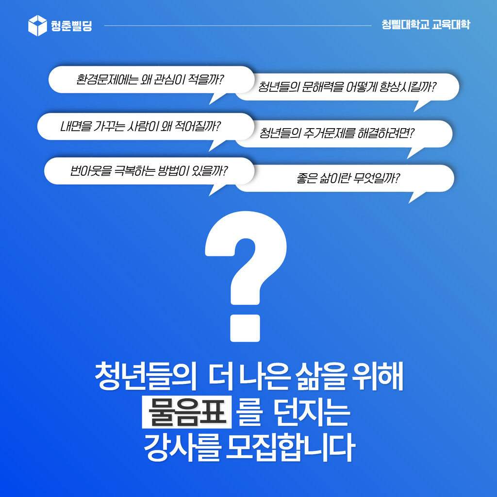 ❓자신만의 물음표가 있는 청년 강사를 찾습니다❓
