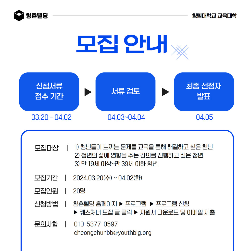 - 메일 : cheongchunbb@youthblg.org