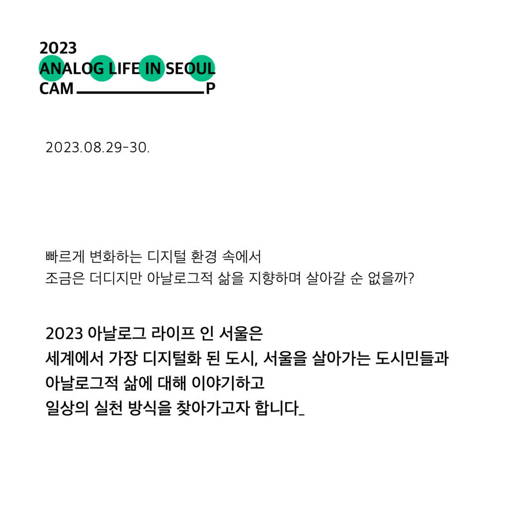 [아날로그 라이프 인 서울 캠프] 참여자 모집