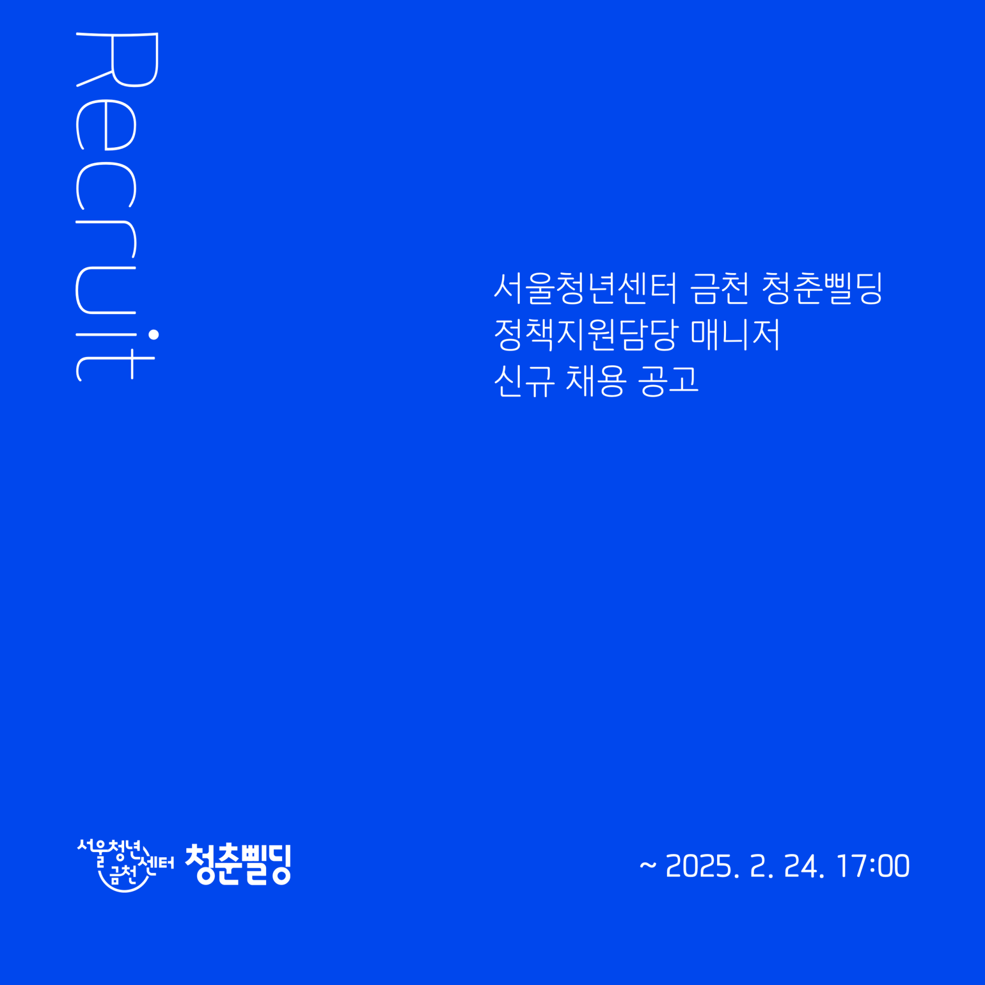 ㆍ채용 분야 : 서울청년센터 금천 청춘삘딩 정책지원담당 매니저