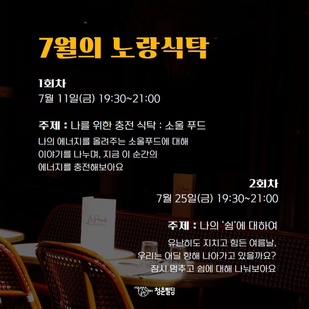 [노랑식탁] 1인가구 소셜다이닝 노랑식탁 7월 참여자 모집