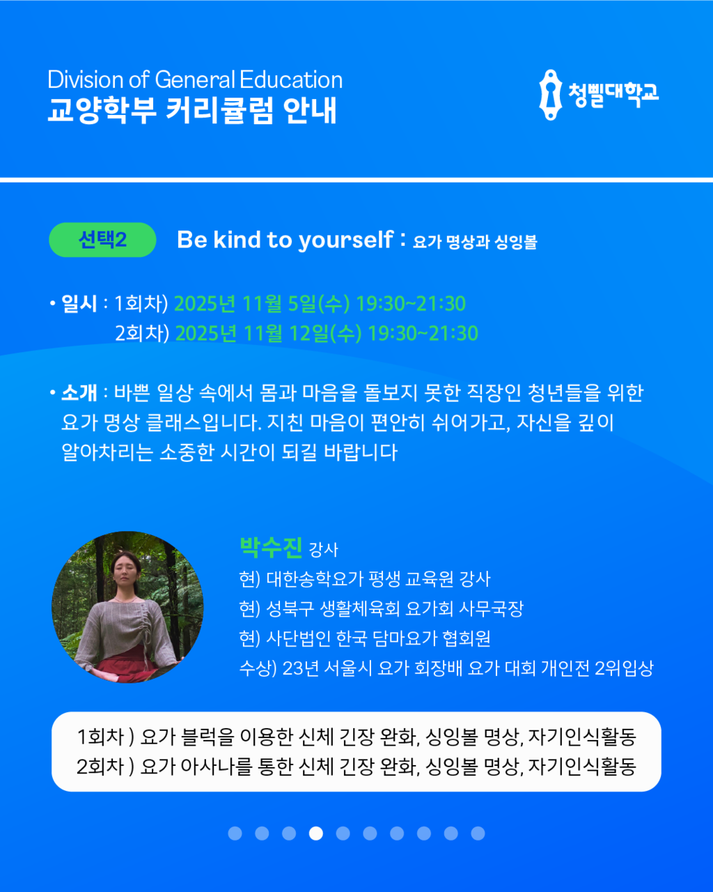 - 교양학부 수강신청 기간 : 2025.09.30.(화)~각 프로그램 시작 5일 전까지