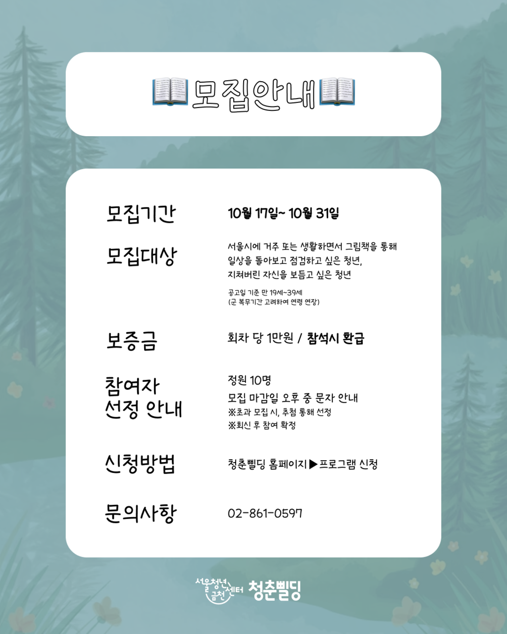 - 신청방법: 청춘삘딩 홈페이지 로그인-> 프로그램 신청