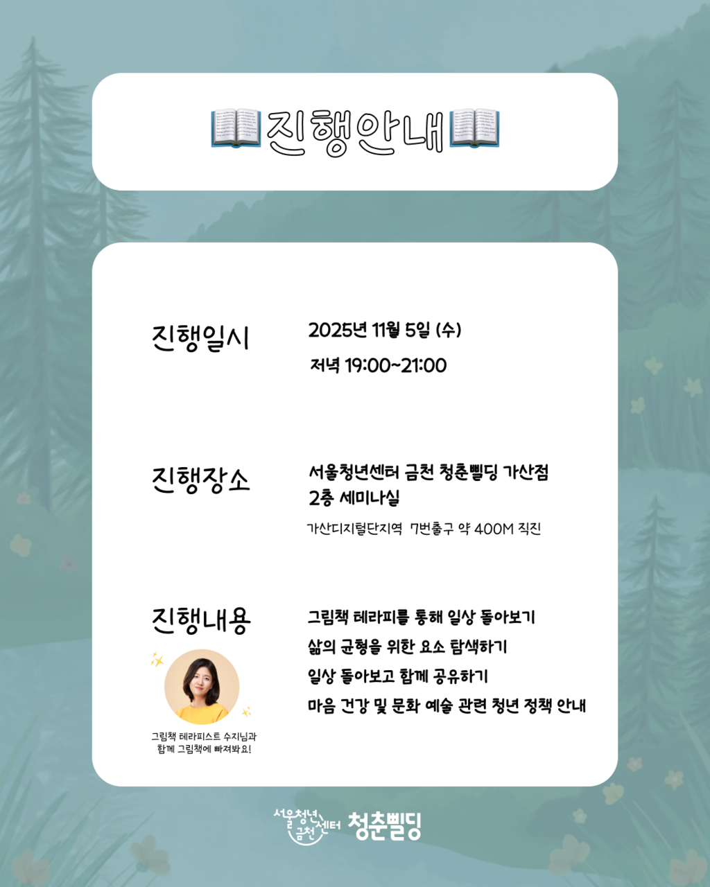 - 진행장소: 서울청년센터 금천 청춘삘딩 (가산점) 2층 세미나실