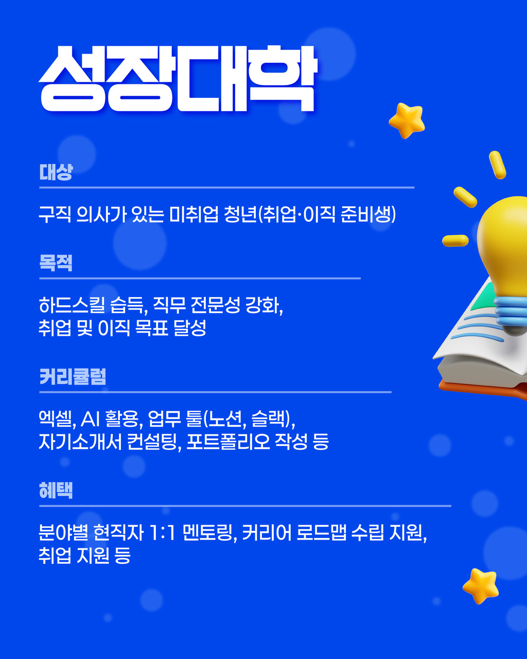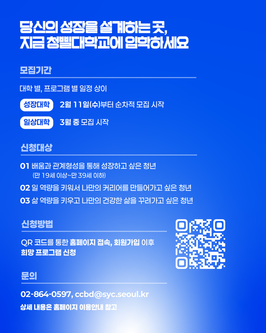 - 성장대학 : 2월 11일(수)부터 순차 모집 시작