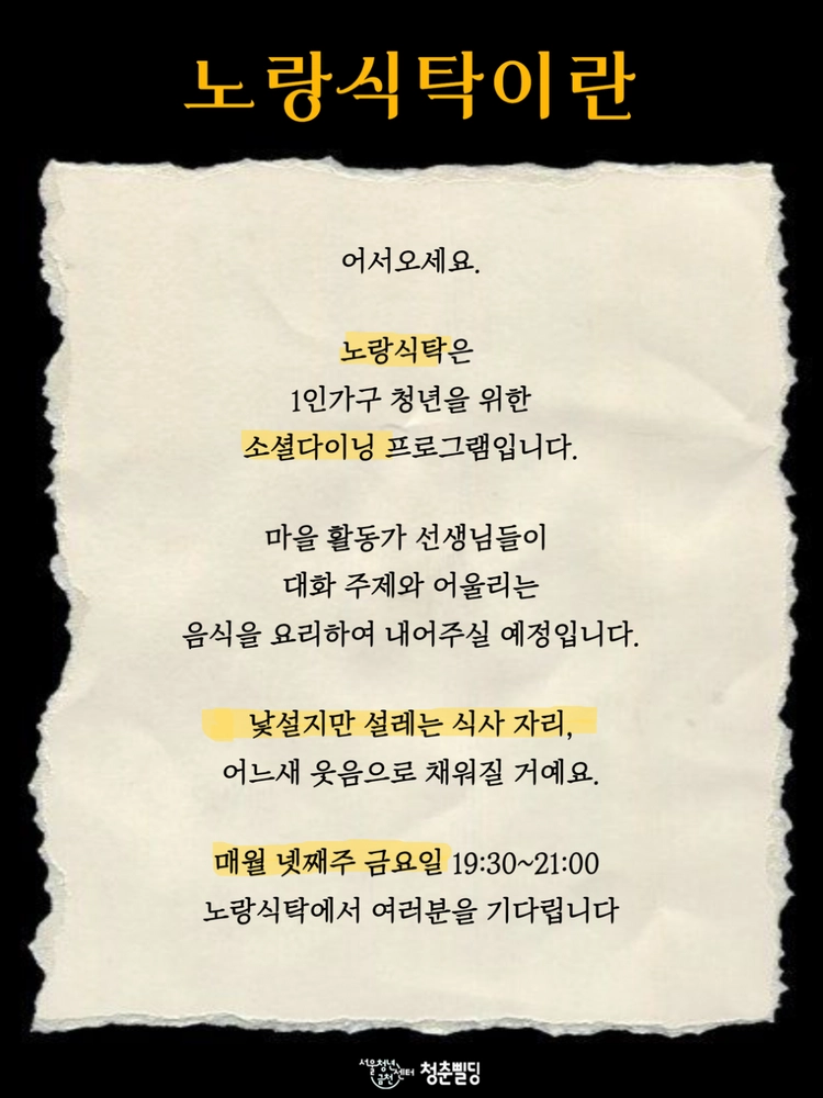 [노랑식탁] 1인가구 소셜다이닝 노랑식탁 4월 참여자 모집