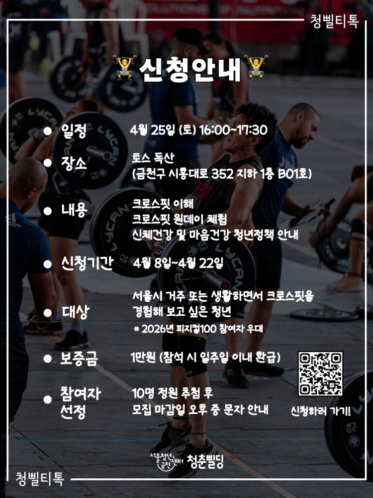 4월 운동티톡- 크로스핏 <오늘은 내가 청삘와드 크로스피터> 참여자 모집