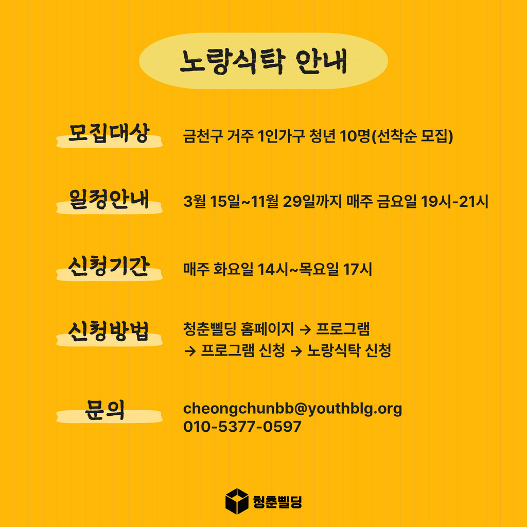 청춘삘딩 홈페이지 > 회원가입 > 프로그램 > 프로그램 신청 > 노랑식탁