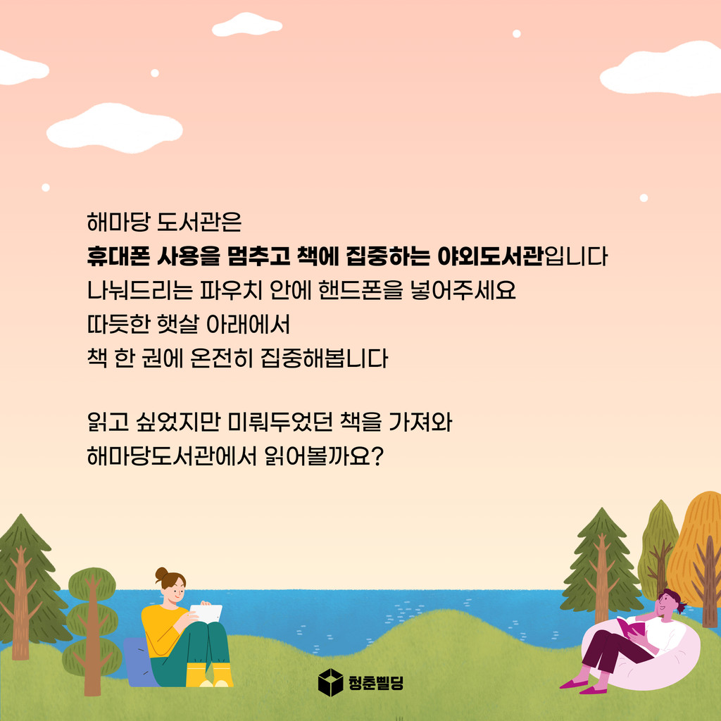 휴대폰은 접고 책을 펼치는 야외 도서관에 놀러오세요!