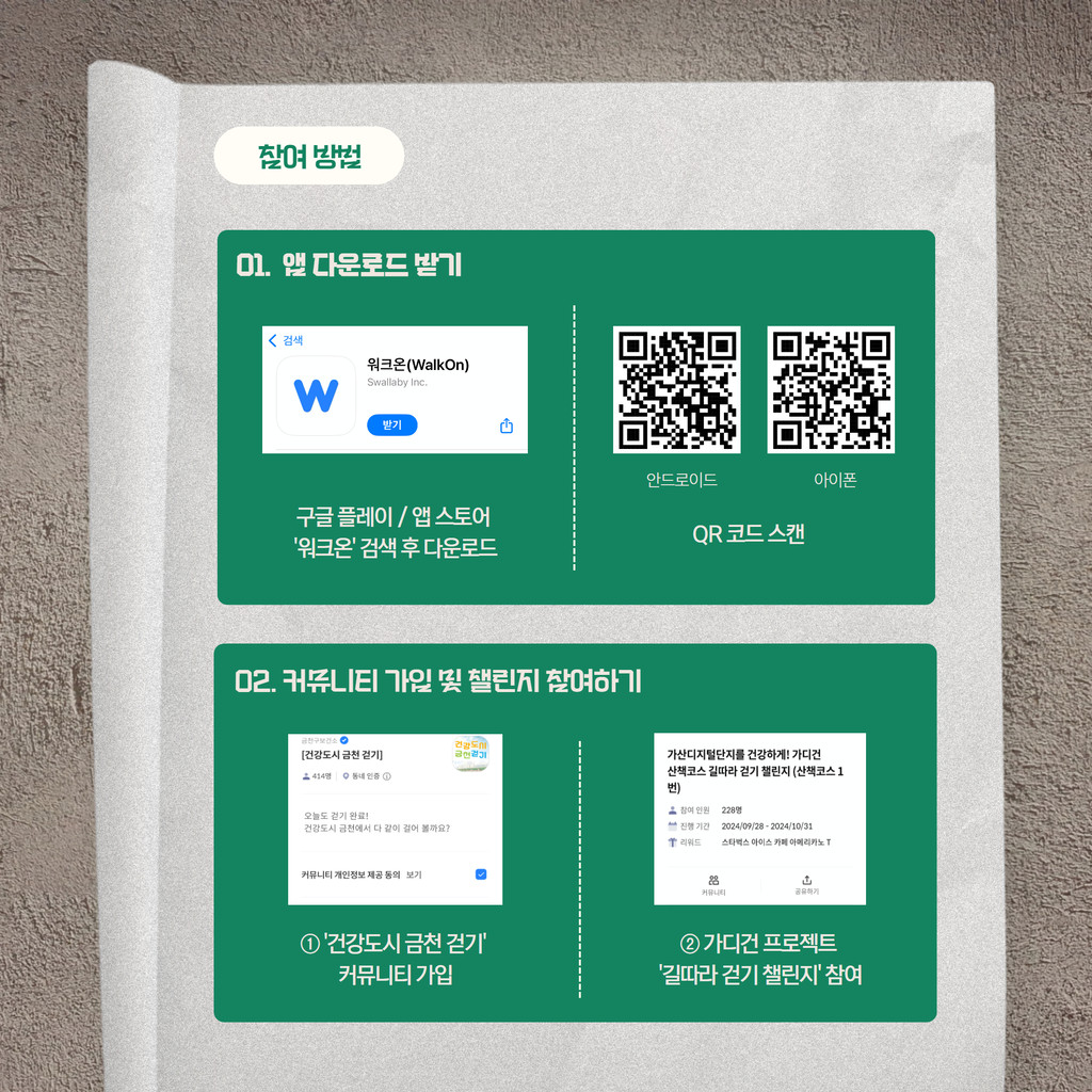 -> ‘๊ฐ๋๊ฑด ํ๋ก์ ํธ’ ๊ธธ ๋ฐ๋ผ ๊ฑท๊ธฐ ์ฑ๋ฆฐ์ง ์ฐธ์ฌ(์ฝ์ค ์ค๋ช