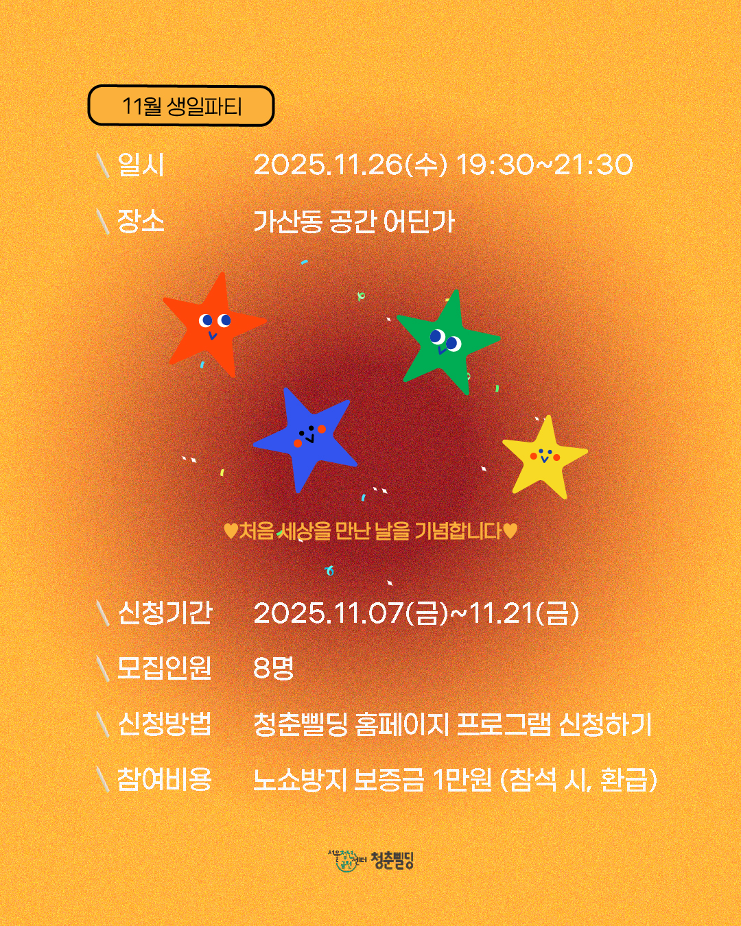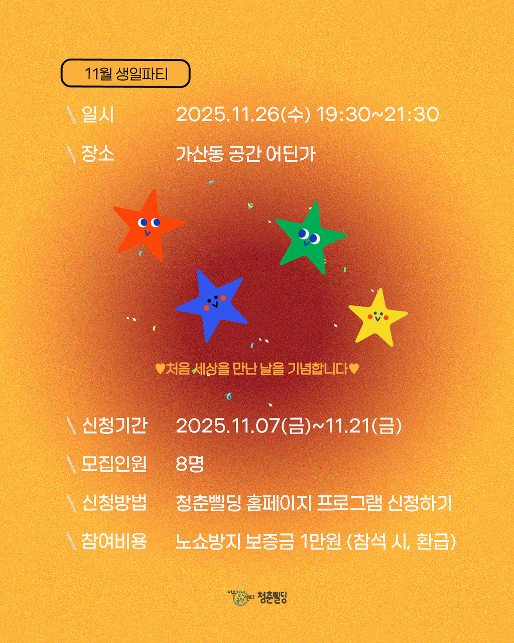 - 대상: 서울시 거주 또는 생활하는 11월 생일자 청년 (19세~39세)